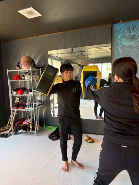 トレーニングは、まず基本の構えやパンチ・キックのフォームから丁寧に指導します。無理にハードな練習を行うことはなく、一人ひとりの体力や目的に合わせてメニューを調整していきます。