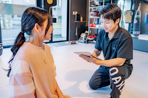 トレーニング終了後は、今回の振り返りや次回のポイントを簡単に共有します。ご希望の方は、その場で次回のご予約も可能です。モチベーションが高いうちに予定を決めておくことで、継続のきっかけにもつながります。もちろん、無理なく、自分のペースで通えるように調整していきます。